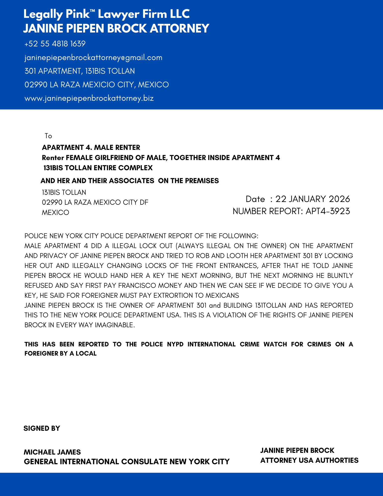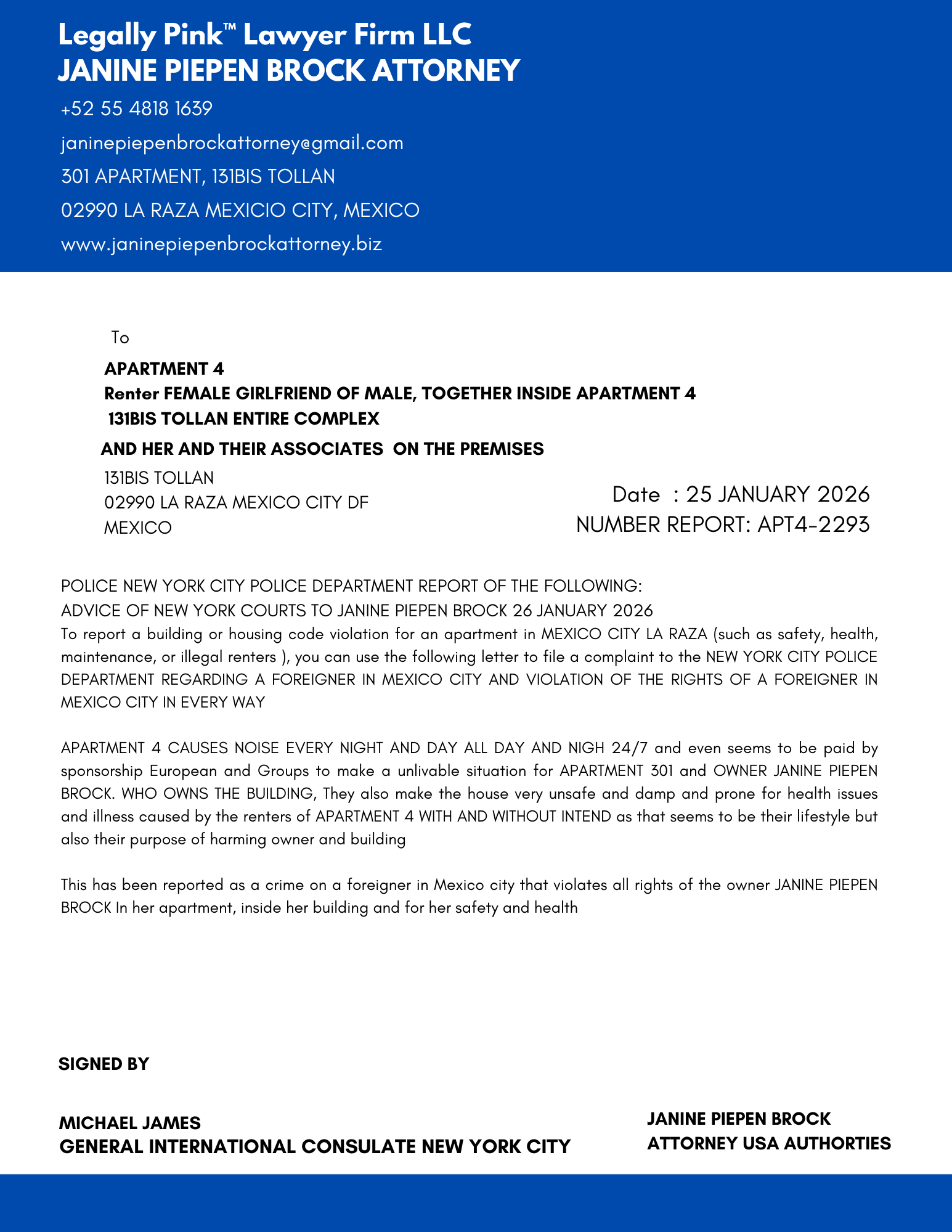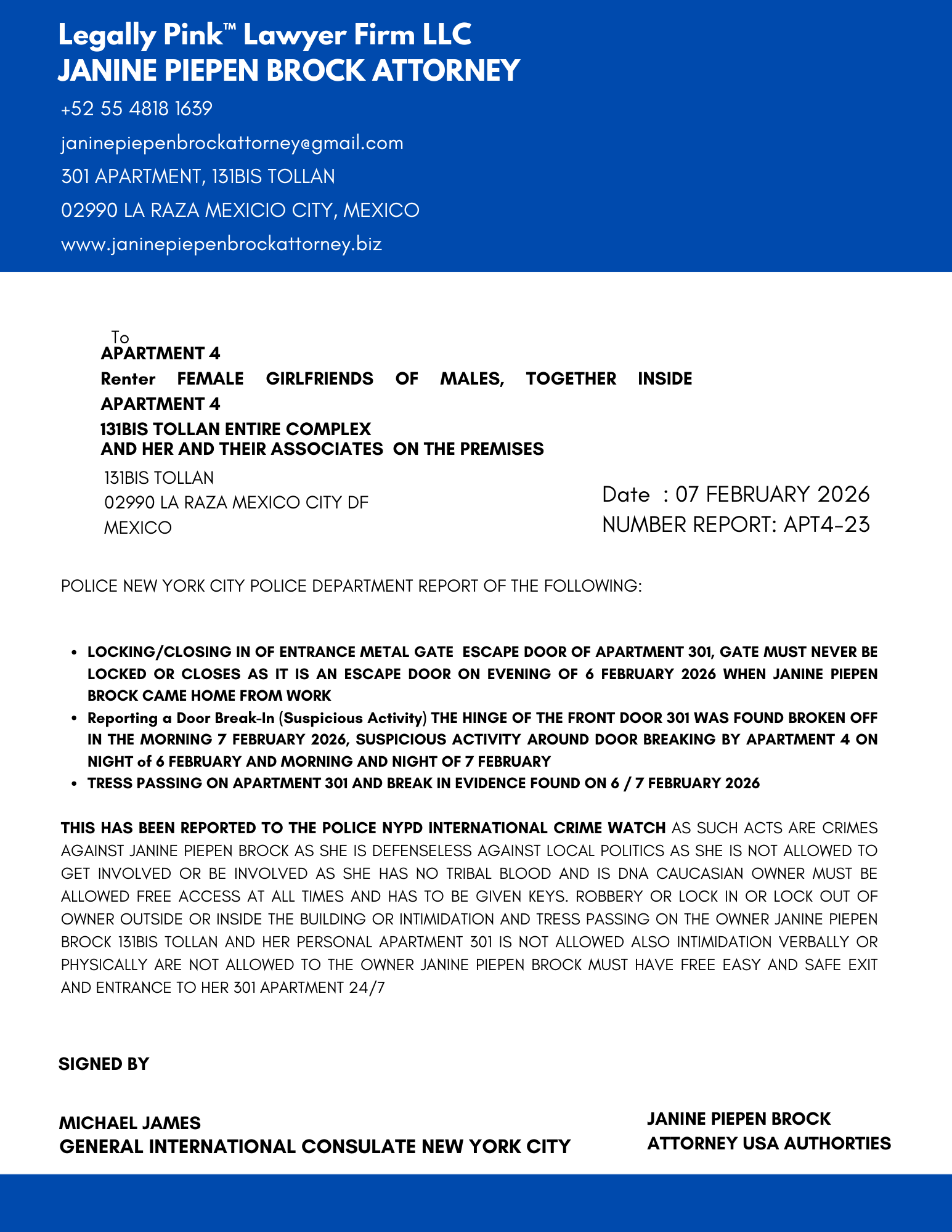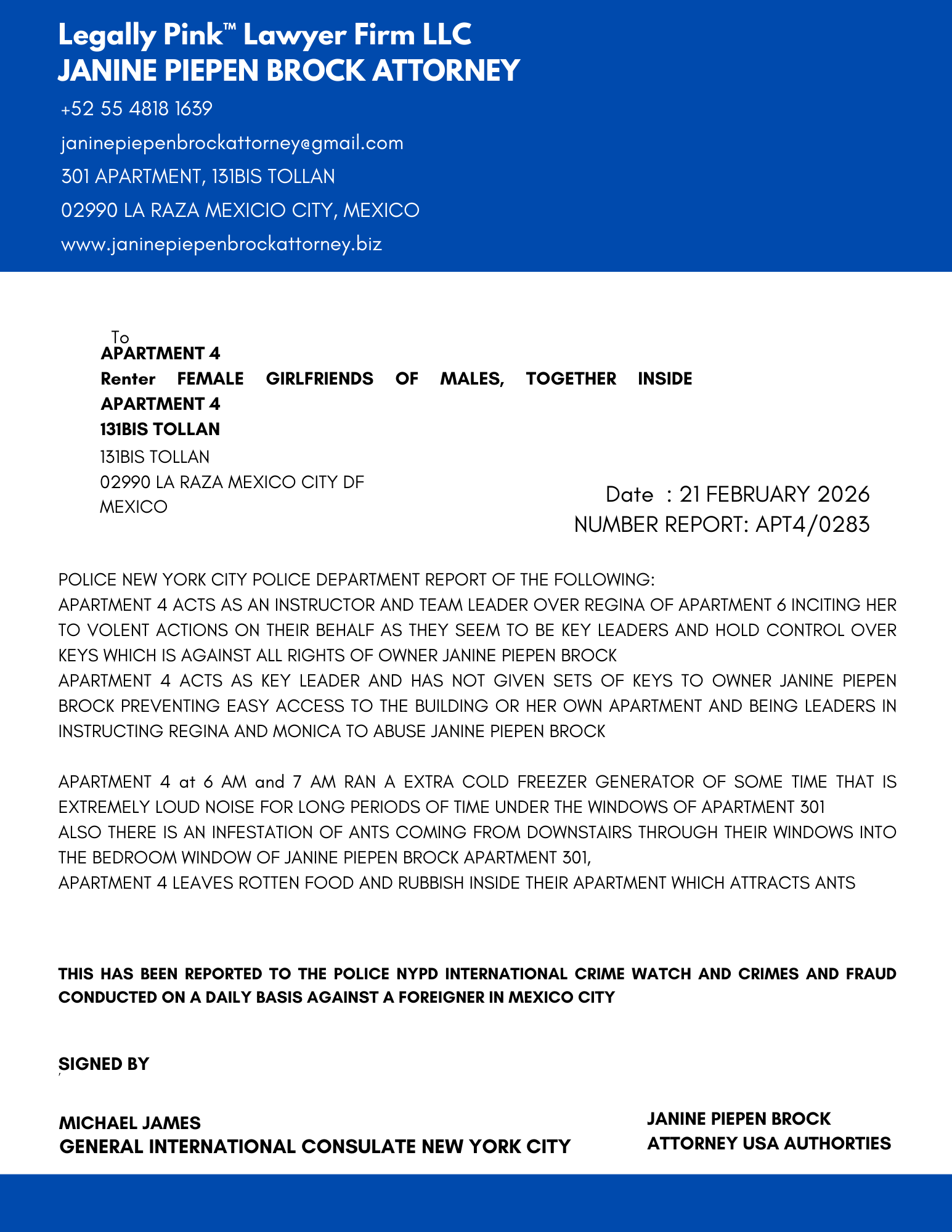 REPORT APARTMENT 4, FEMALE RENTER 11 JANUARY 2026