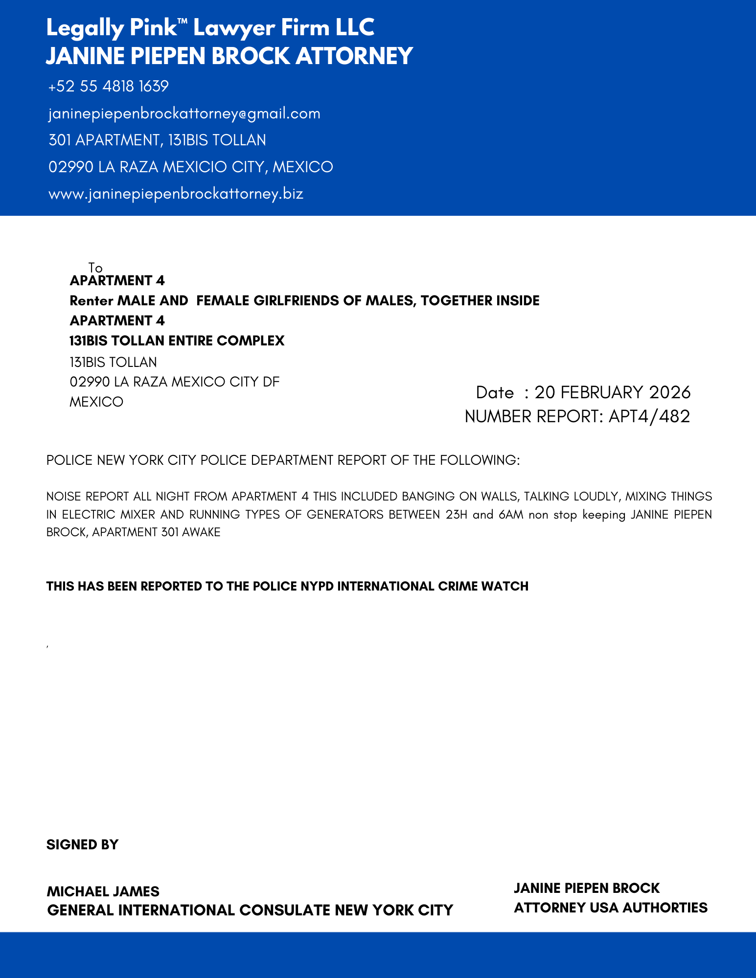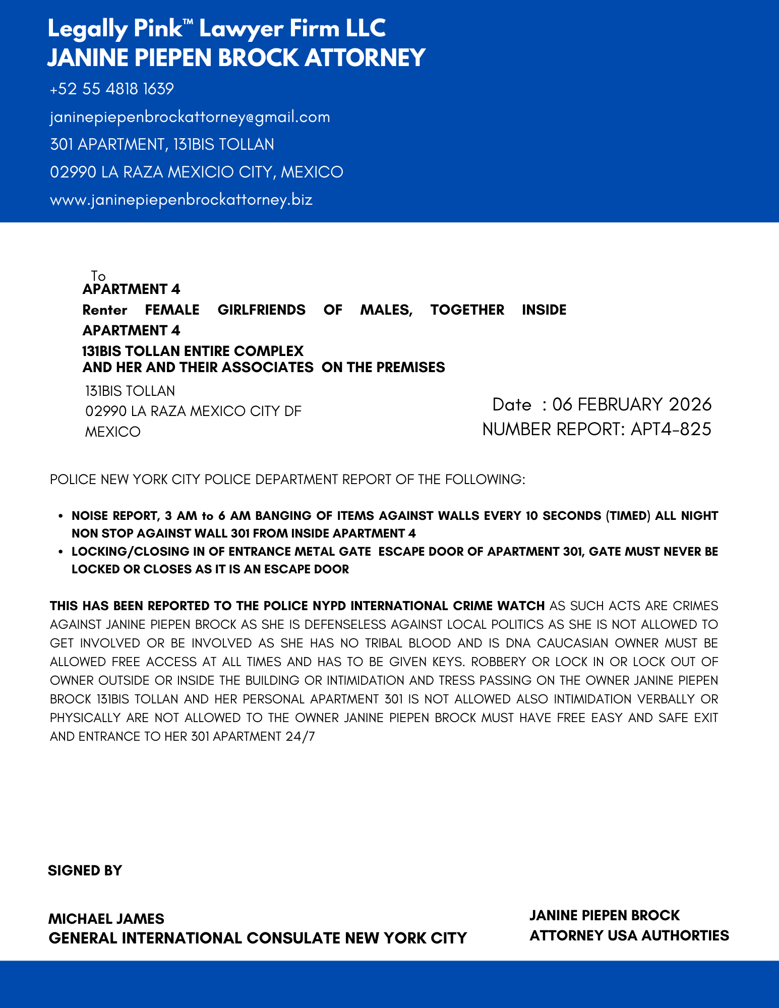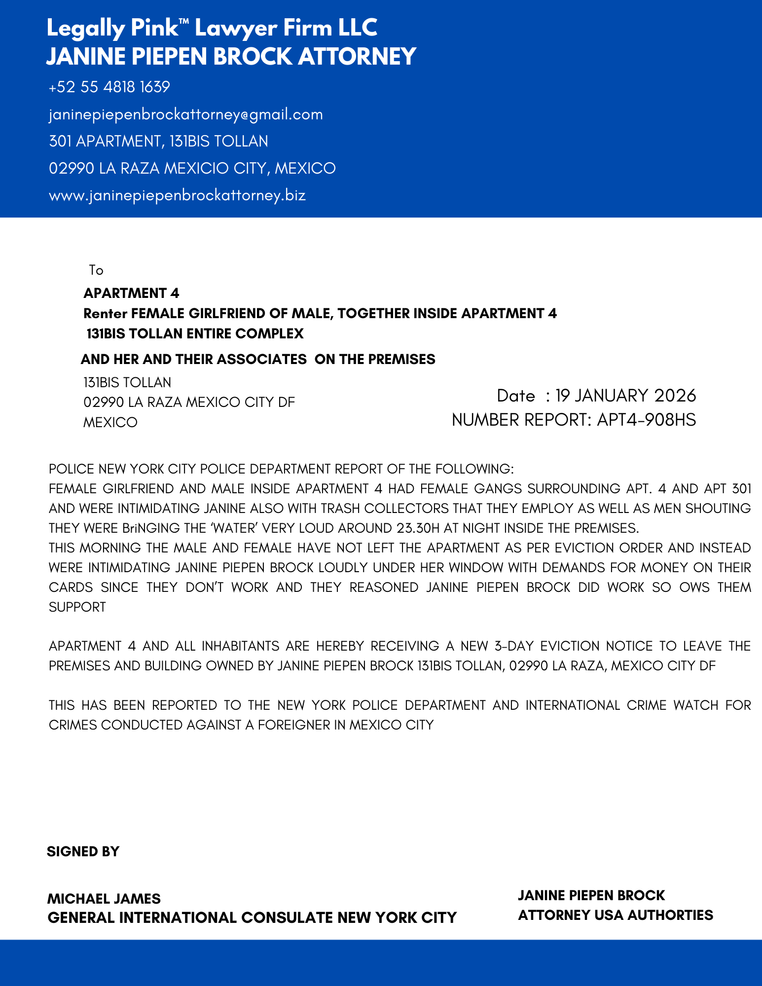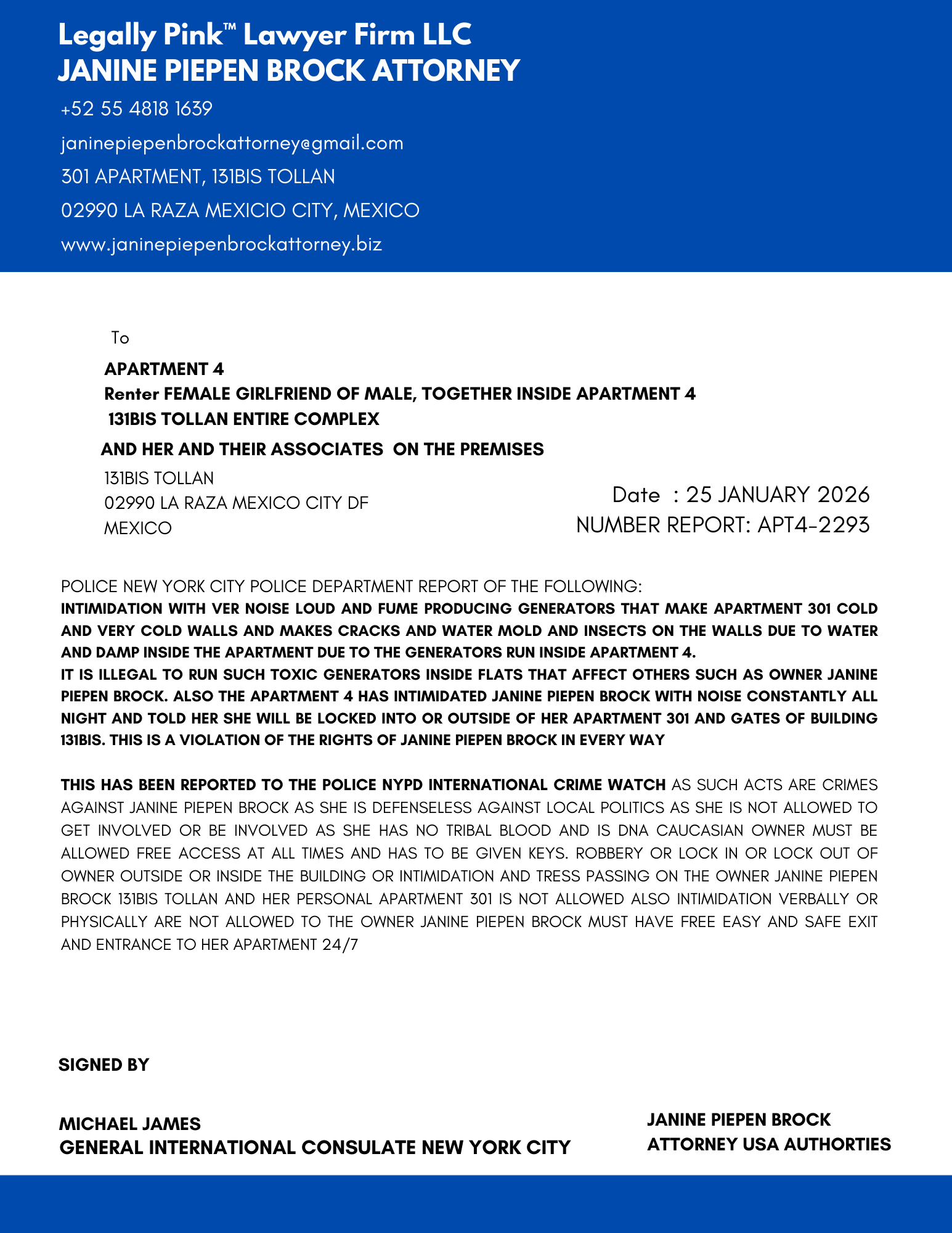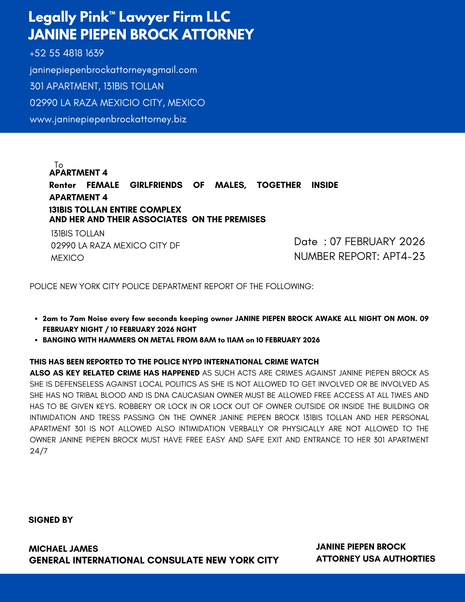 REPORT APARTMENT 4, FEMALE RENTER 11 JANUARY 2026