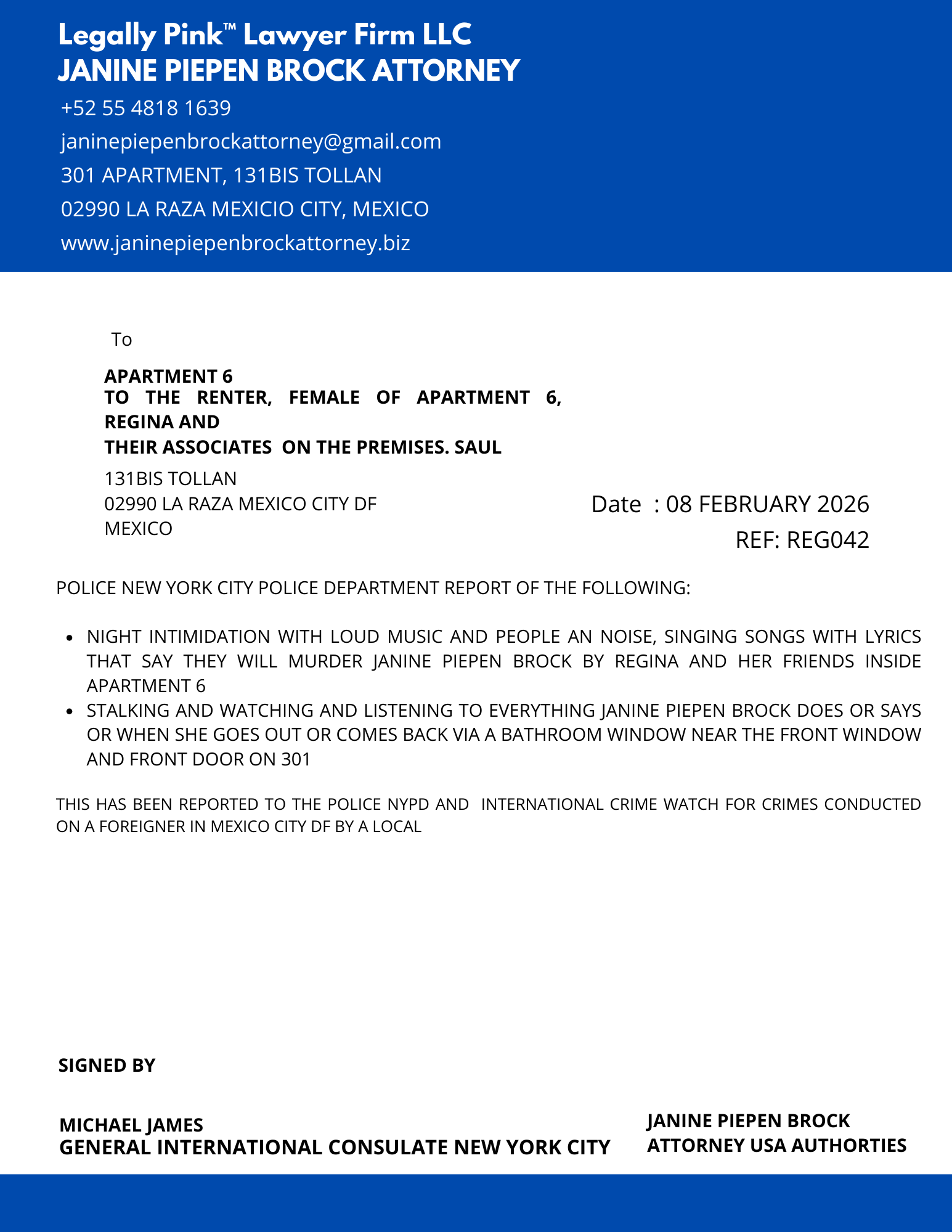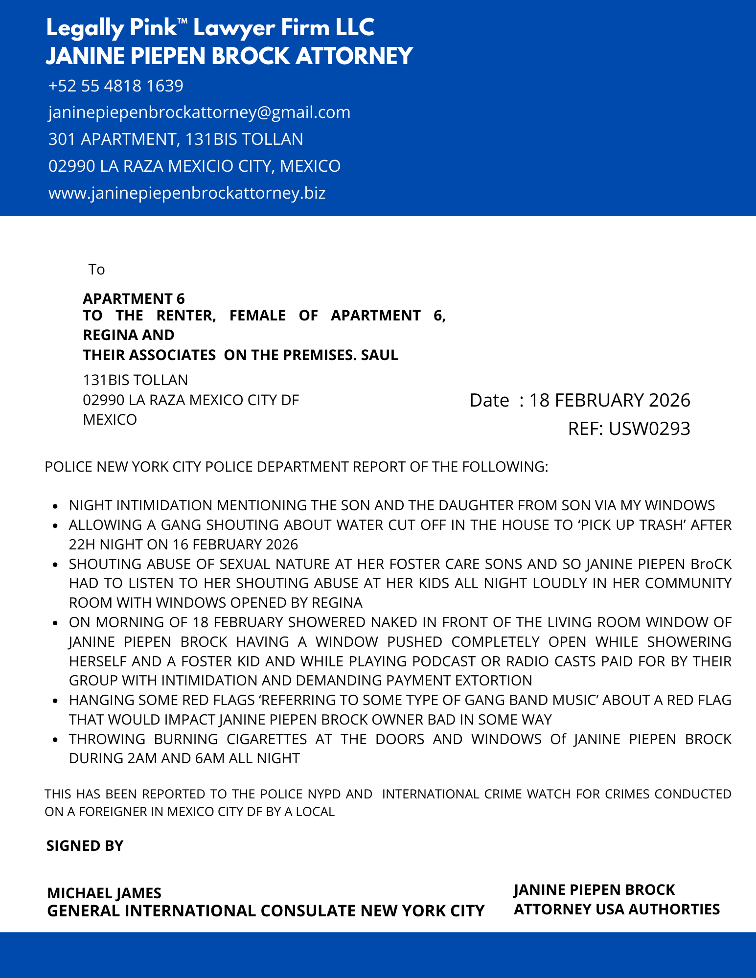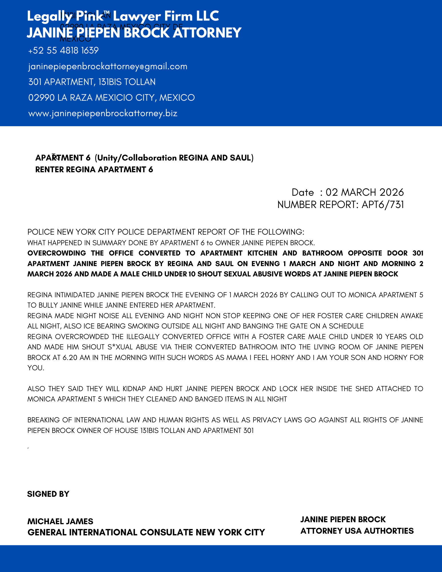 REPORT APARTMENT 5, FEMALE RENTER, 10 JANUARY 2026