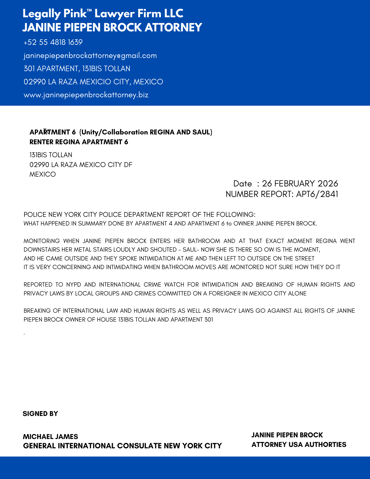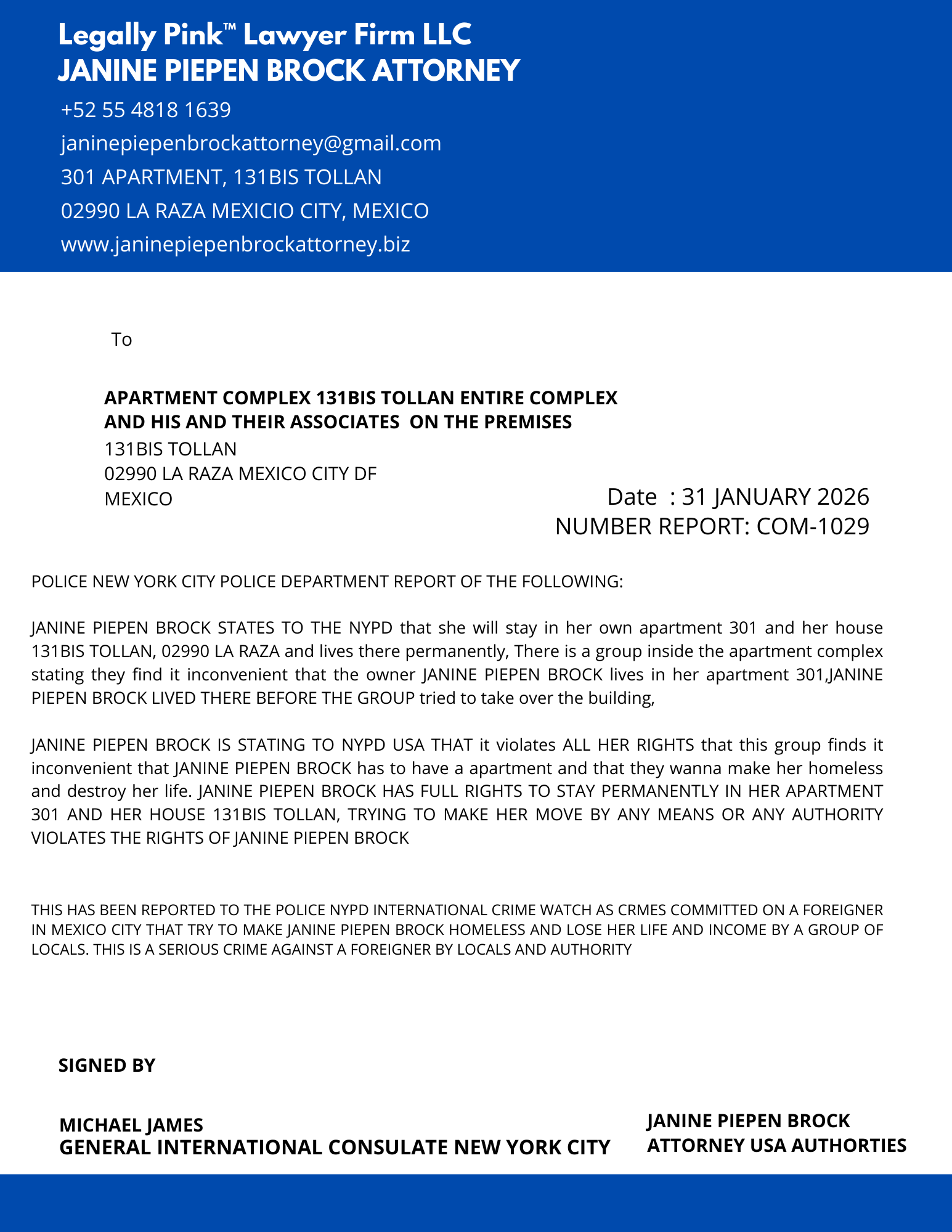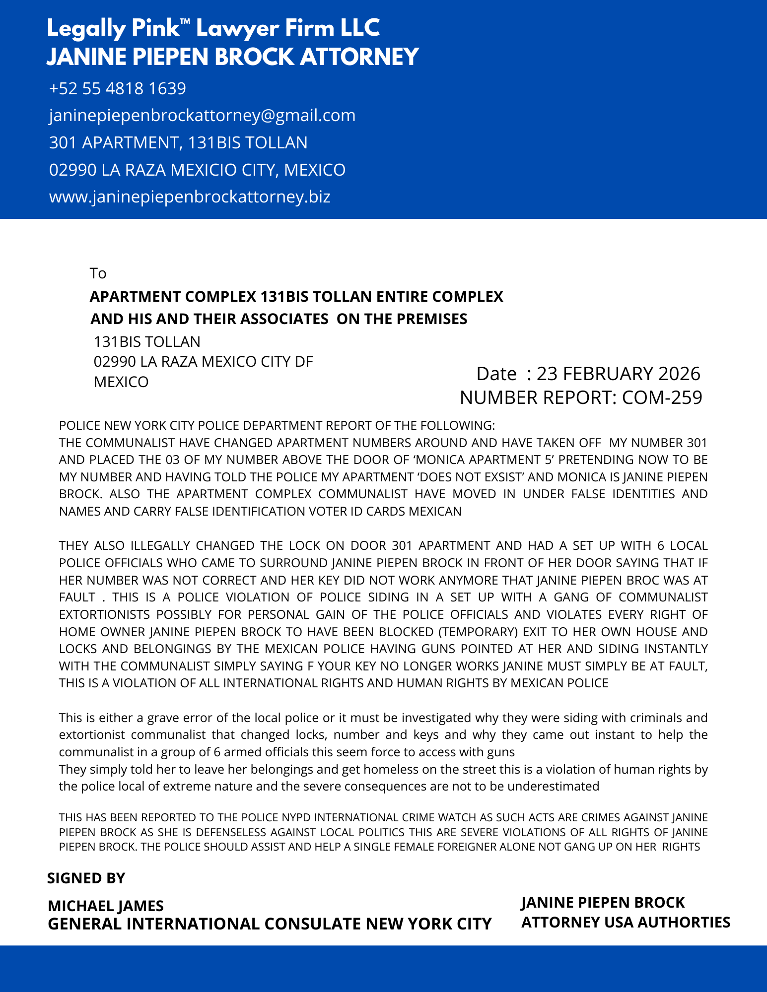 REPORT APARTMENT COMPLEX ENTIRE UNIT 131BIS TOLLAN, 26 DECEMBER 2025