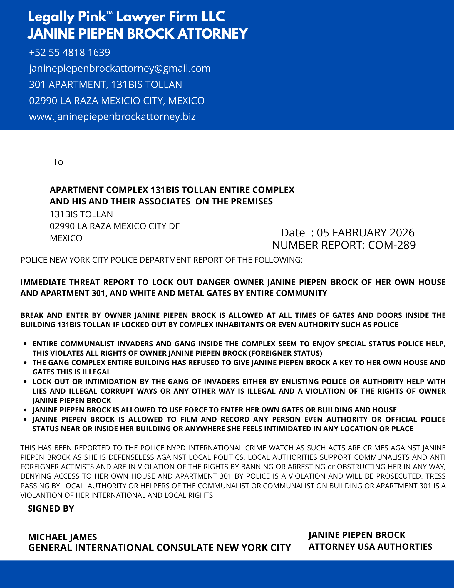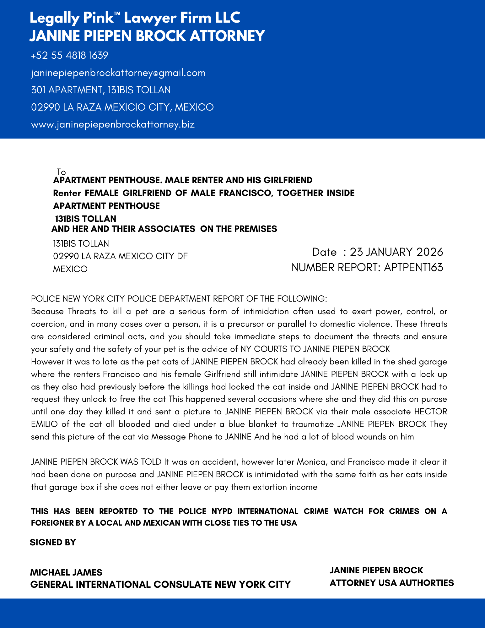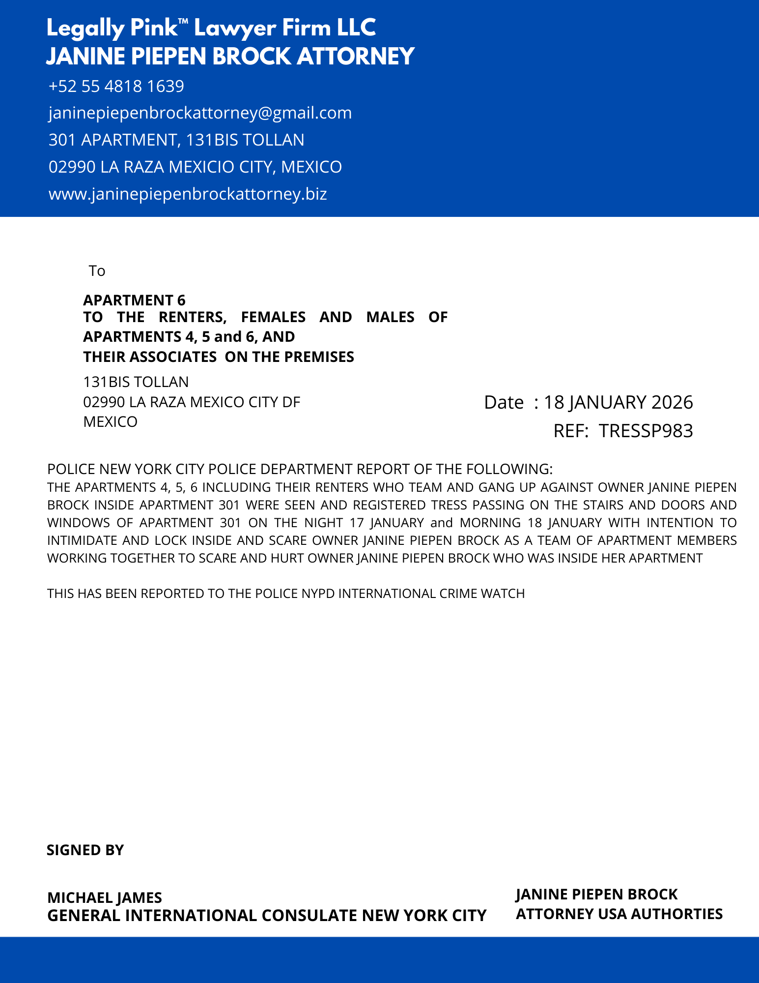 REPORT APARTMENT COMPLEX ENTIRE UNIT 131BIS TOLLAN, 26 DECEMBER 2025