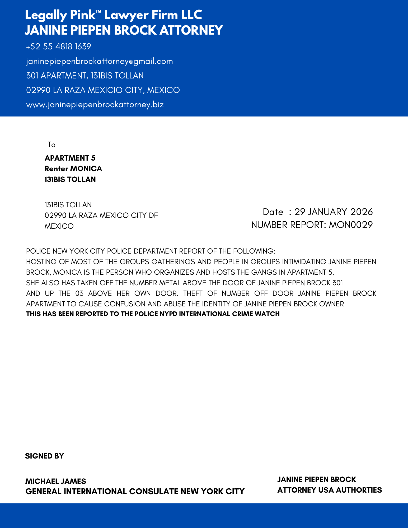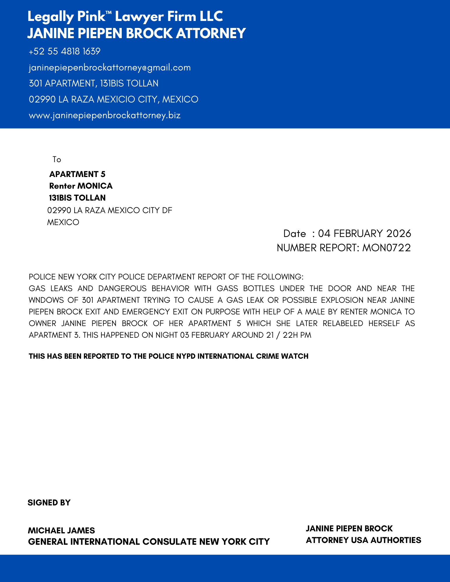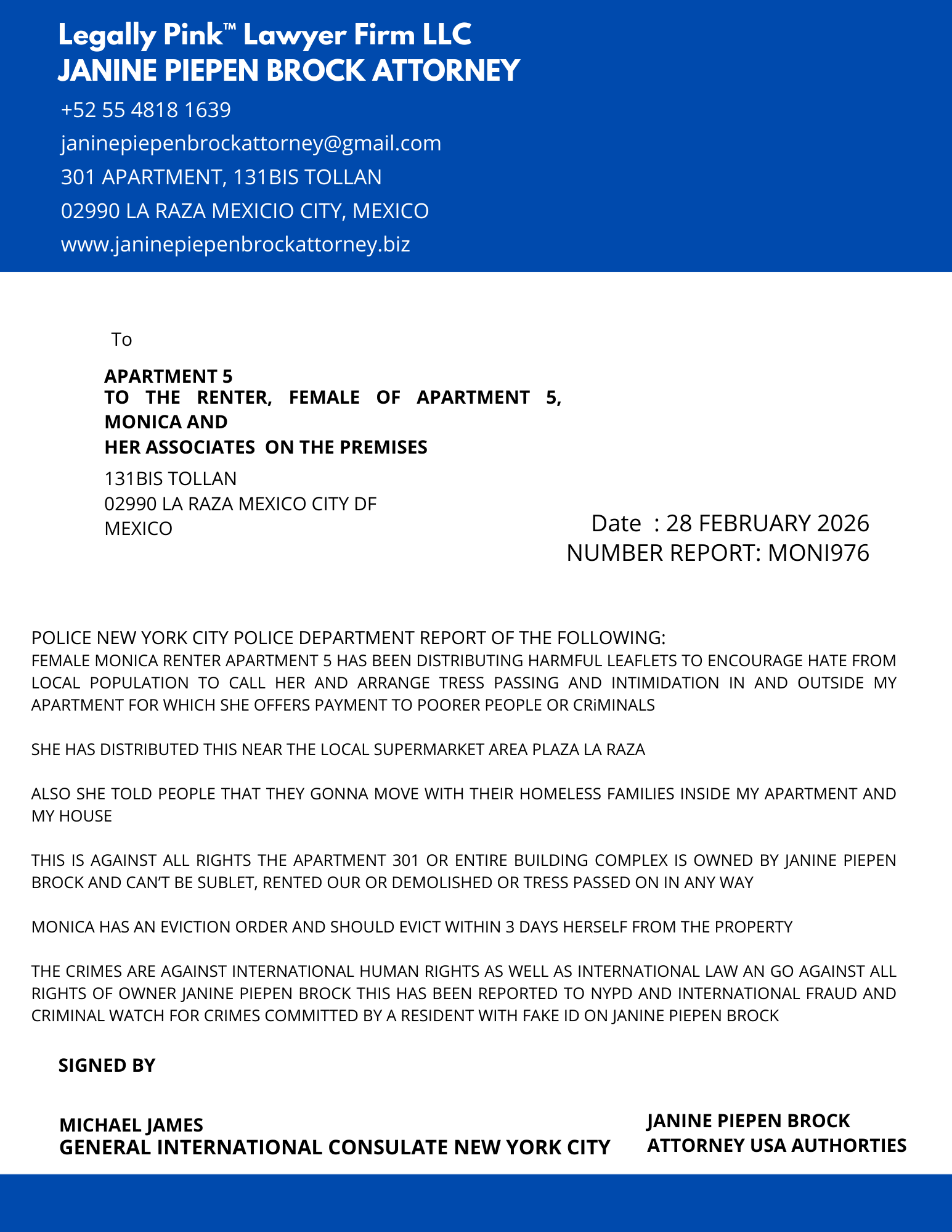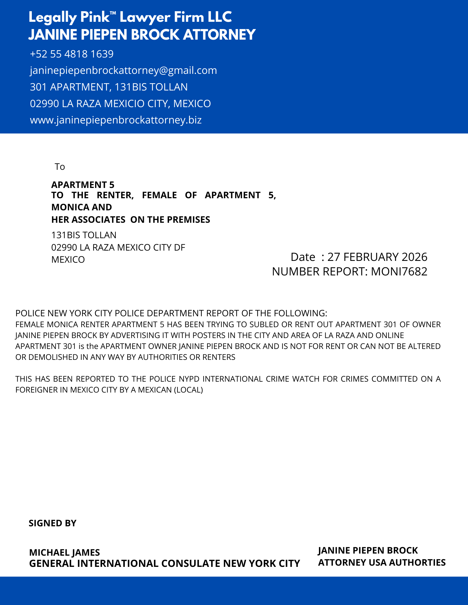 REPORT APARTMENT 5, MONICA RENTER, 27 DECEMBER 2025