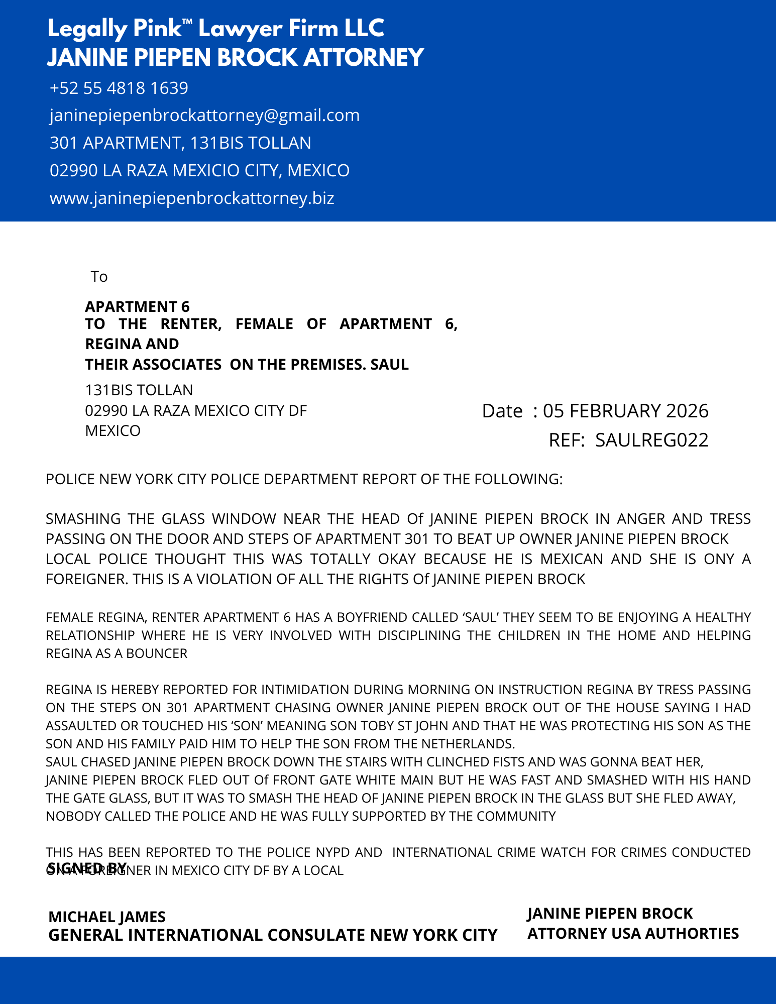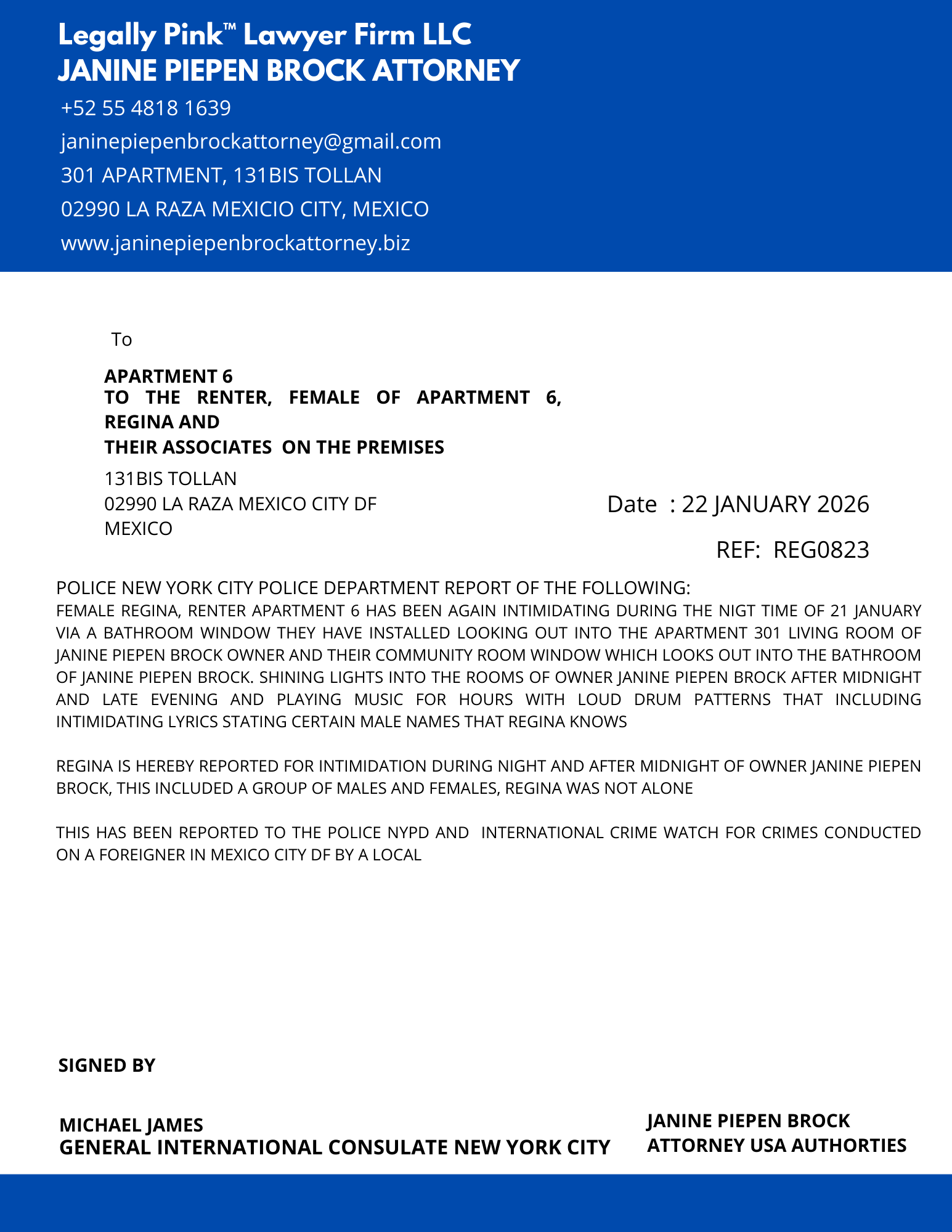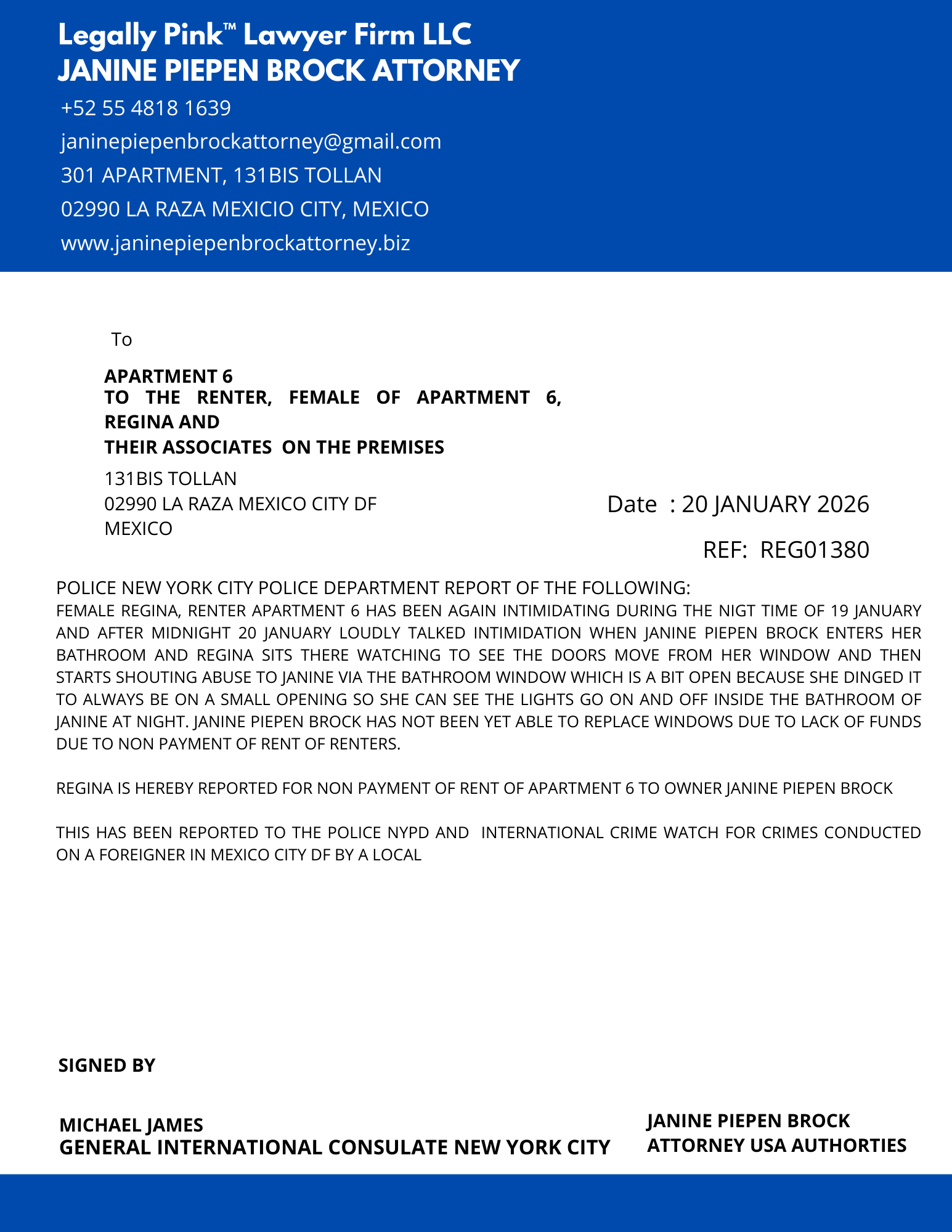 REPORT APARTMENT 5, FEMALE RENTER 12 JANUARY 2026