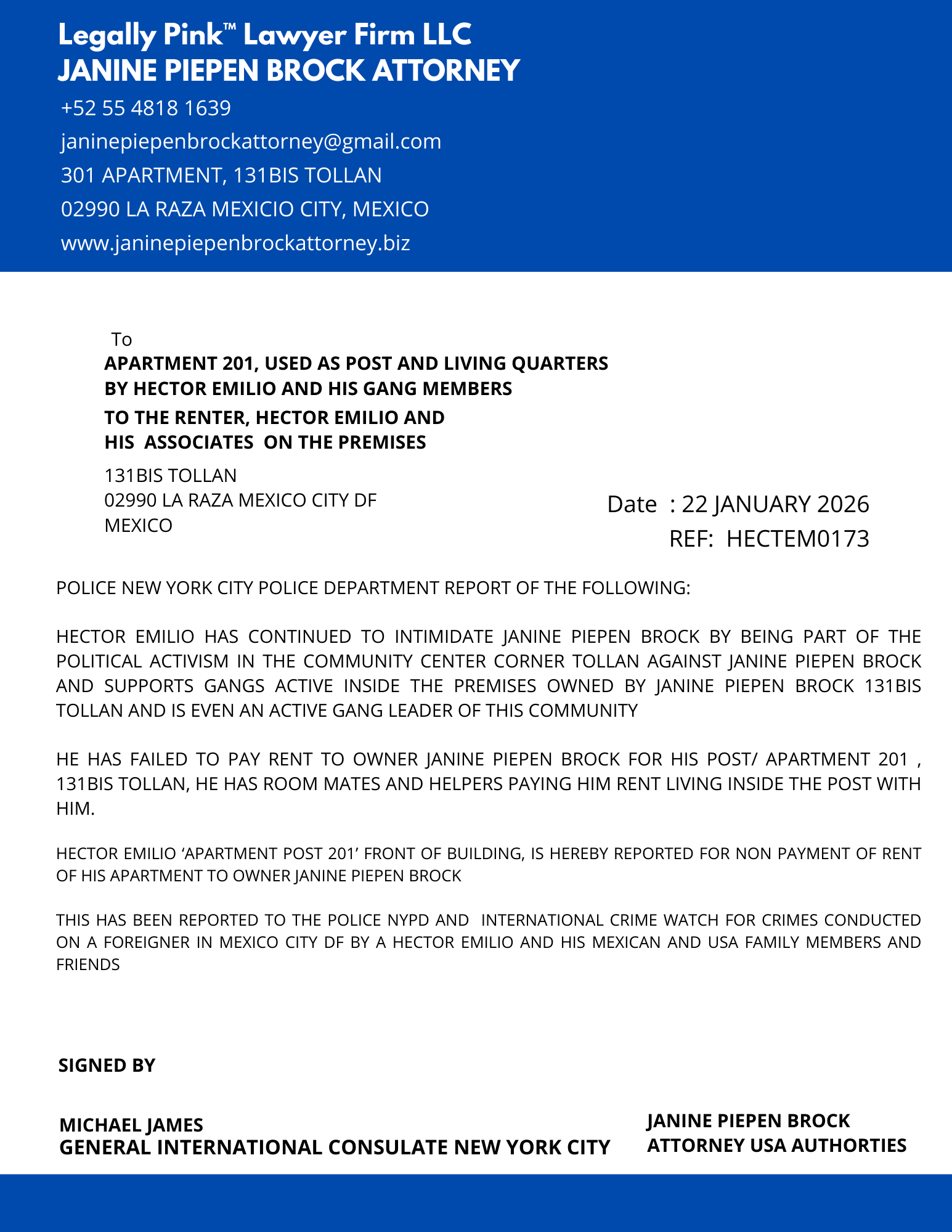 REPORT APARTMENT POST 201 HECTOR 131BIS, 22 JANUARY 2026