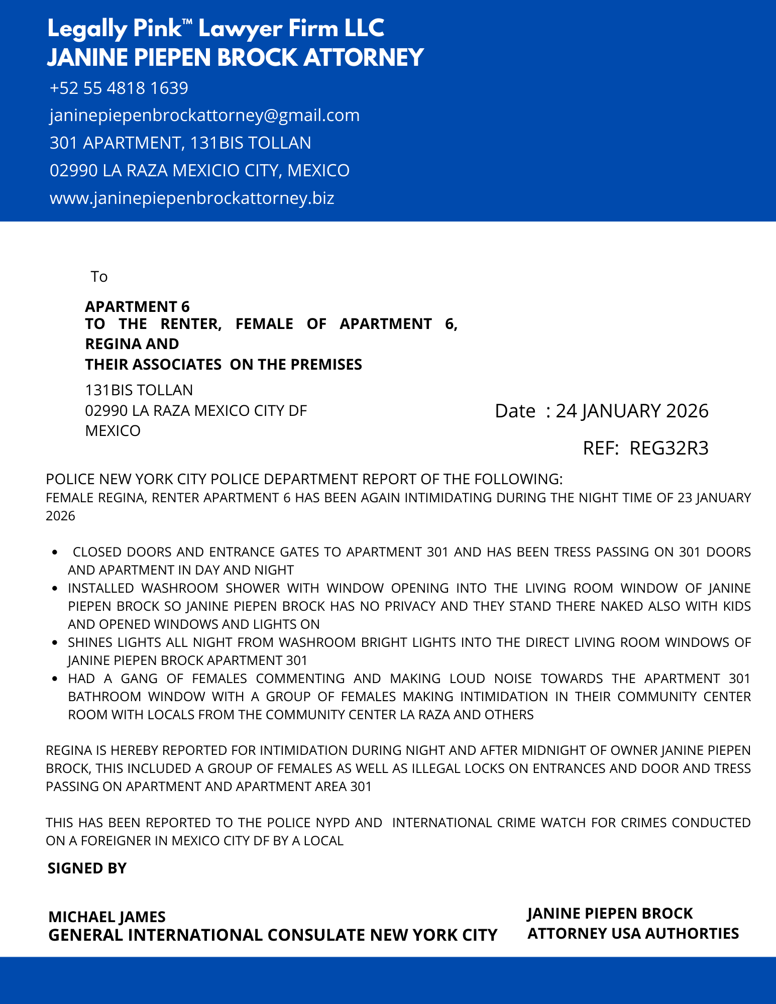 REPORT APARTMENT 4 FEMALE RENTER , 10 JANUARY 2026