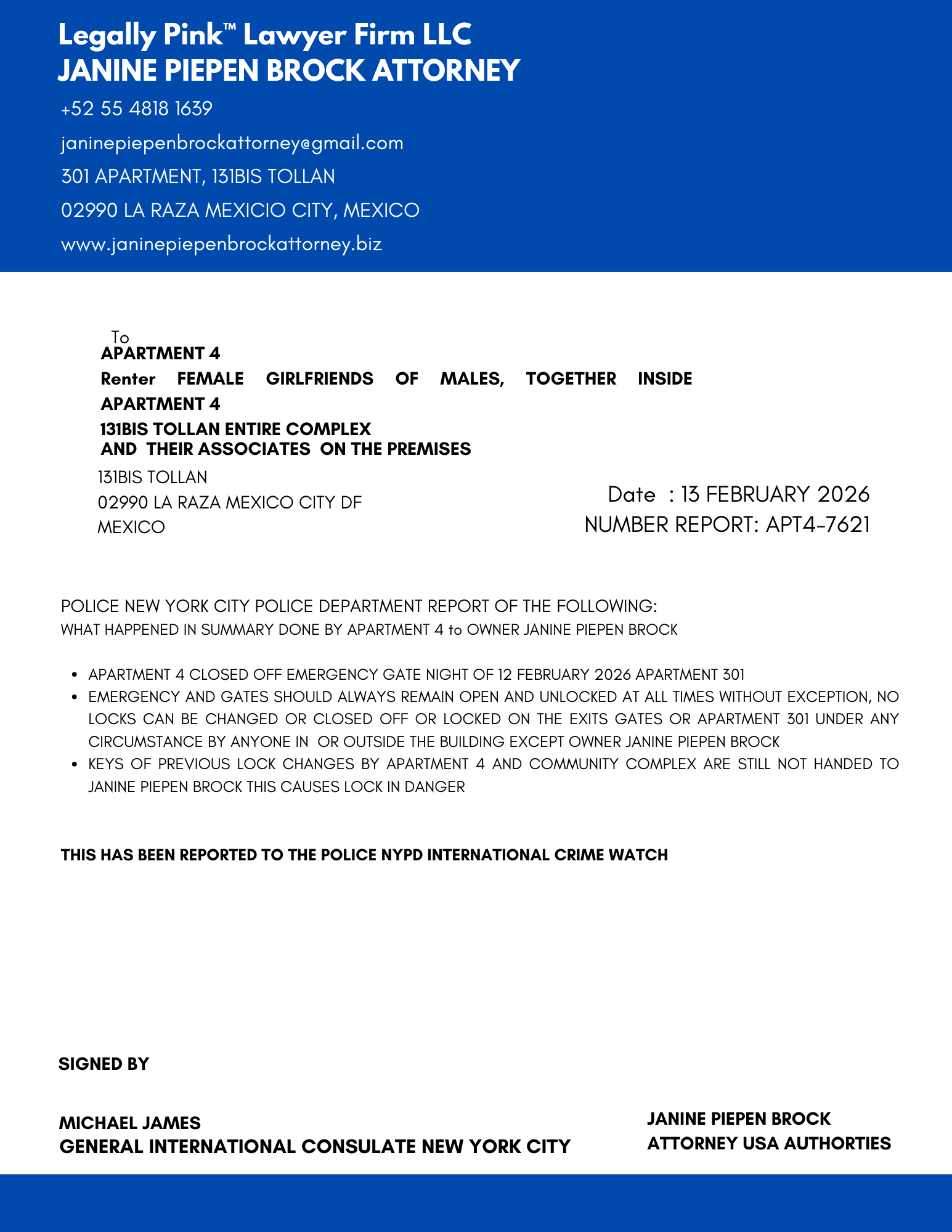 REPORT APARTMENT 4, EMERGENCY EXIT, 13 FEBRUARY 2026
