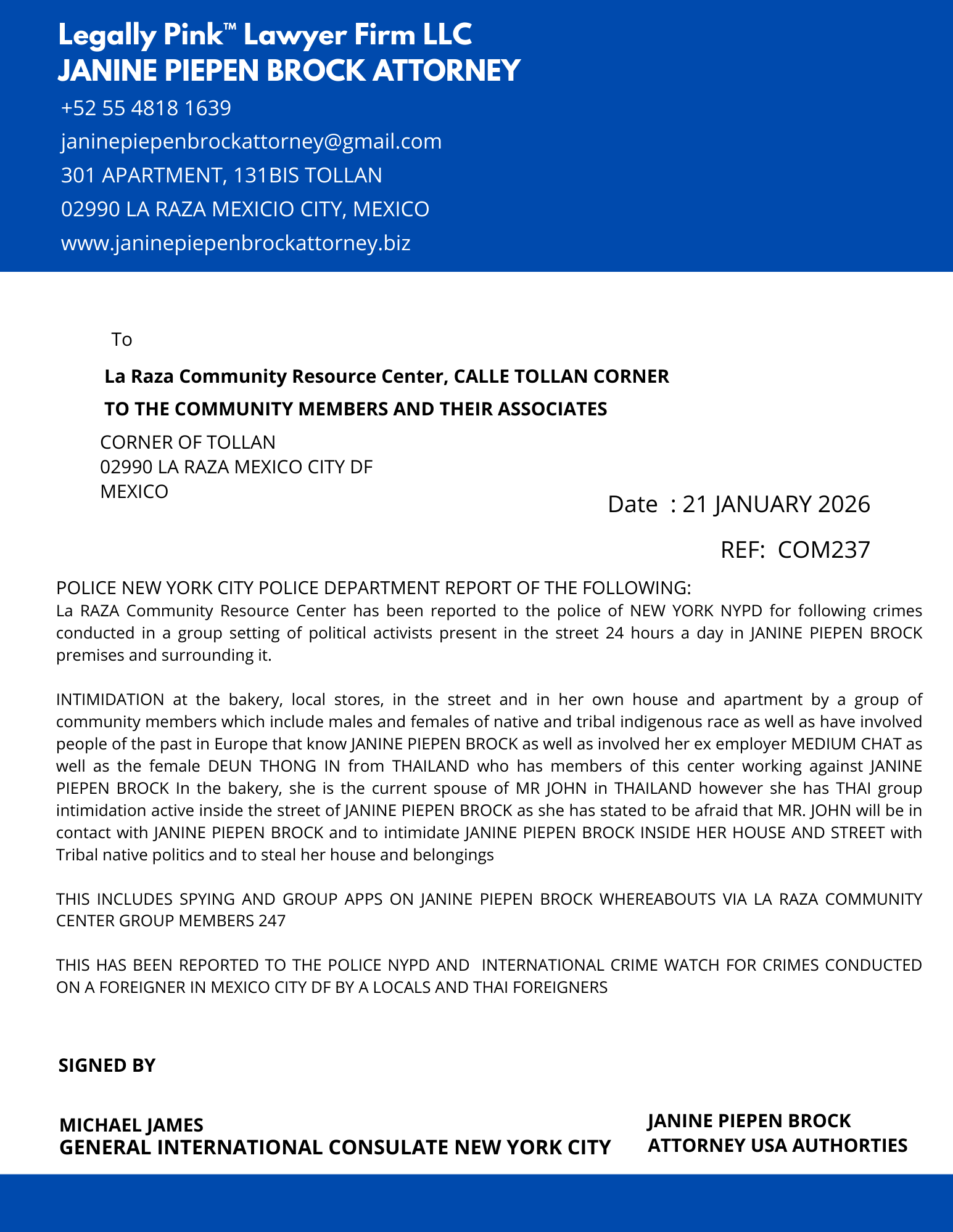 REPORT LA RAZA COMMUNITY CENTER, TOLLAN, 21 JANUARY 2026