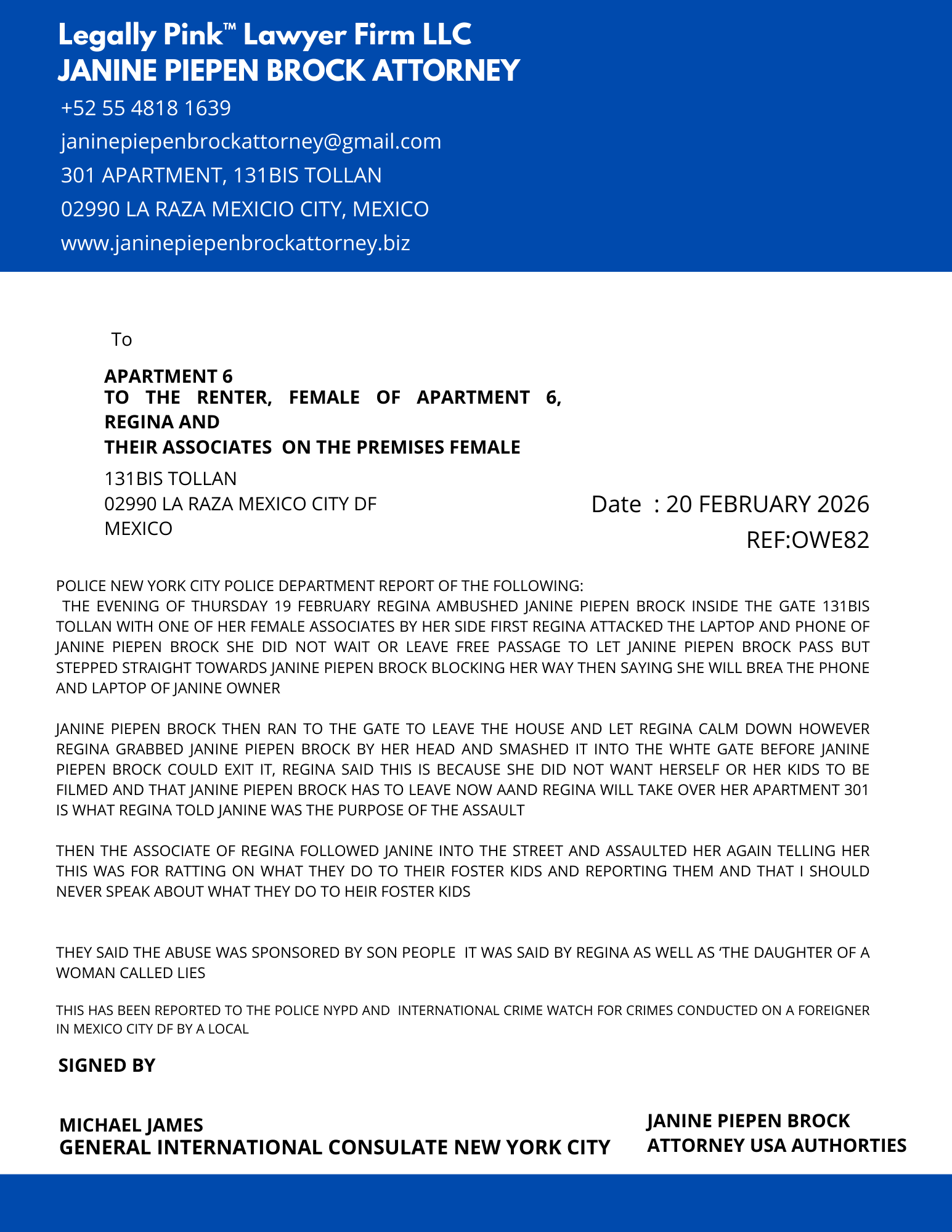 REPORT APARTMENT 6 ASSU REGINA 19 FEBRUARY 2026