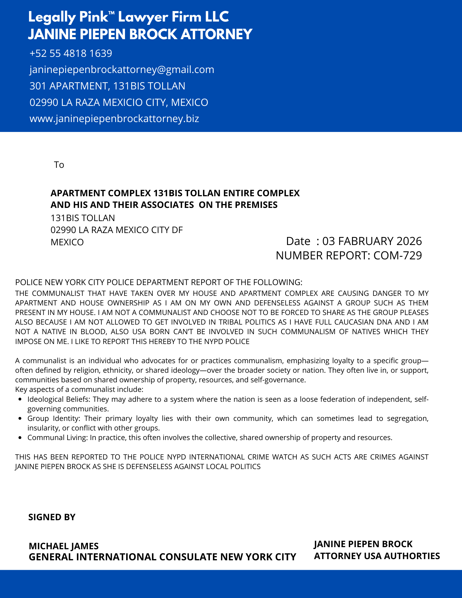 REPORT COMMUNALISTS APT. COMPLEX 03 FEBRUARY 2026