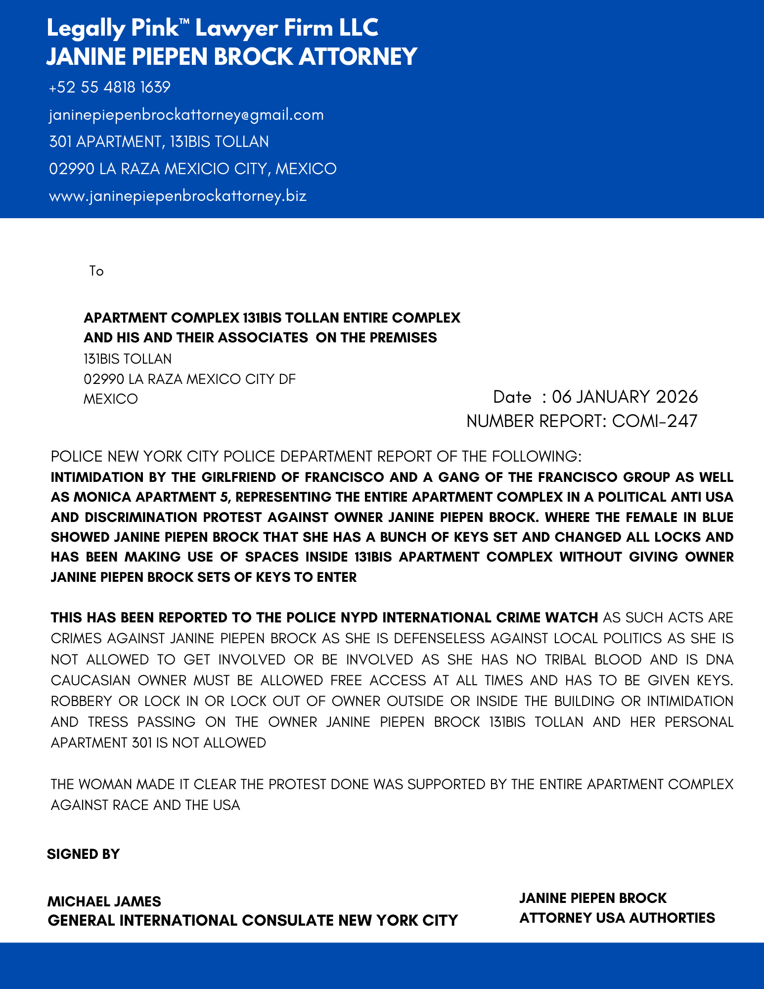 REPORT ENTIRE APARTMENT COMPLEX 131BIS TOLLAN, 06 JANUARY 2026