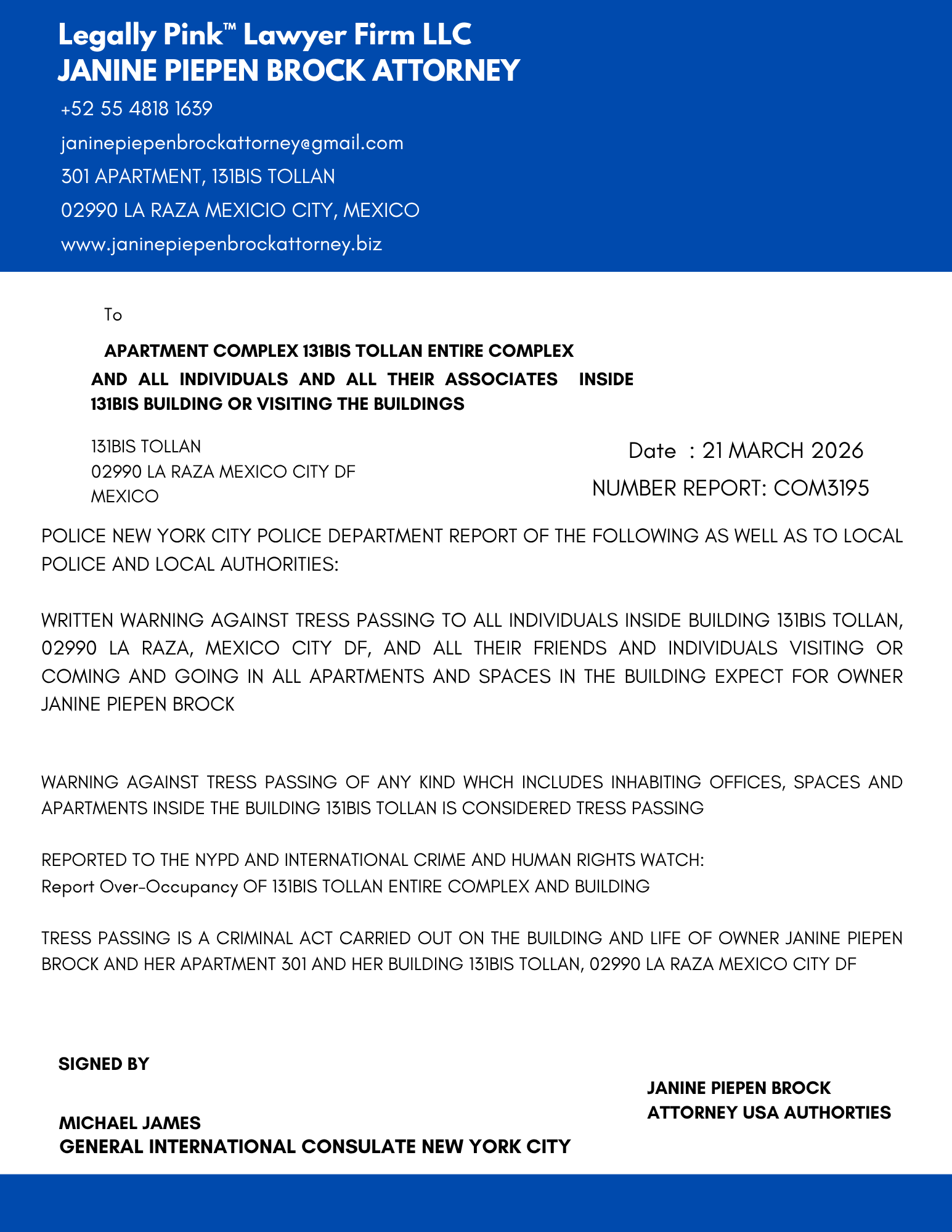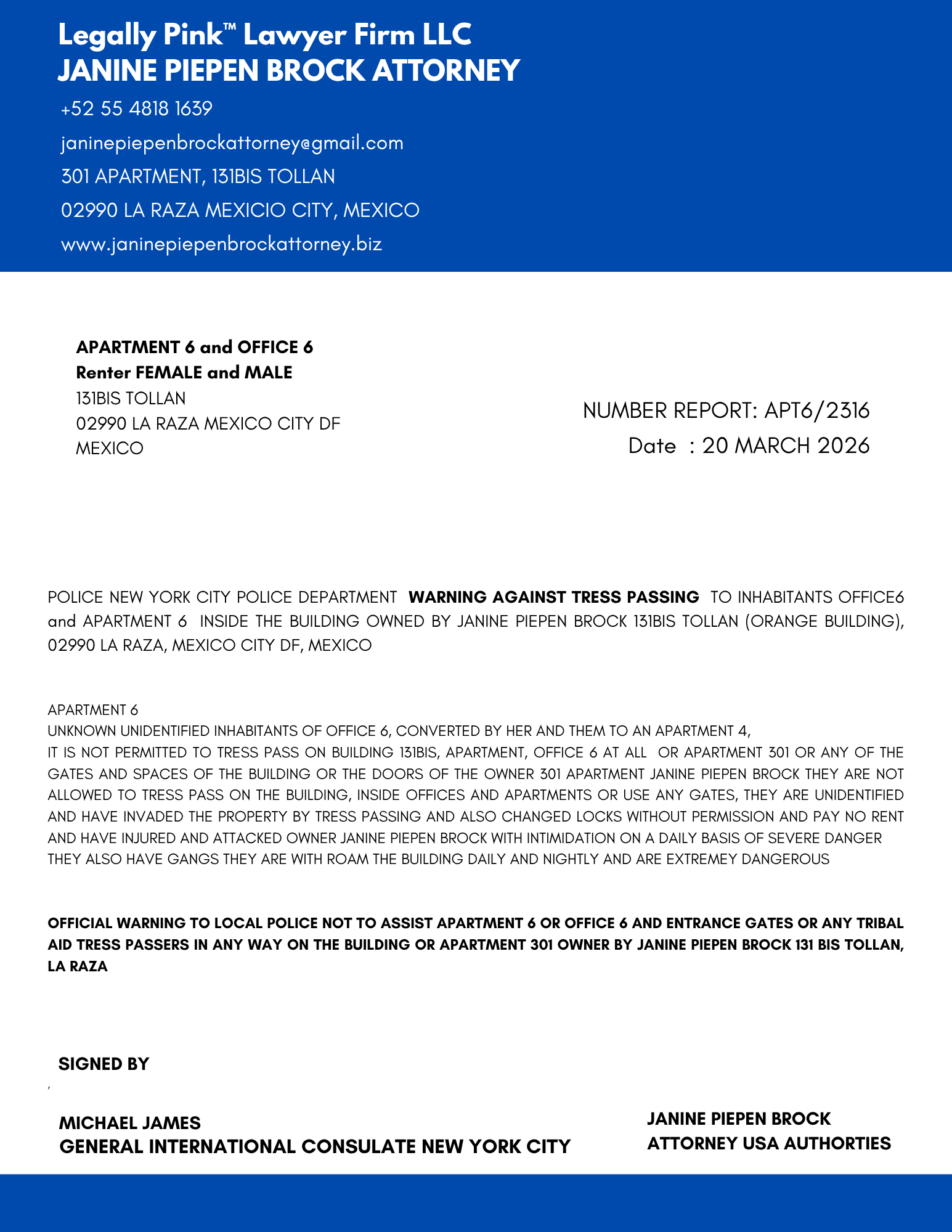 TRESS PASS WARNING APARTMENT 6 OFFICE 20 MARCH 2026