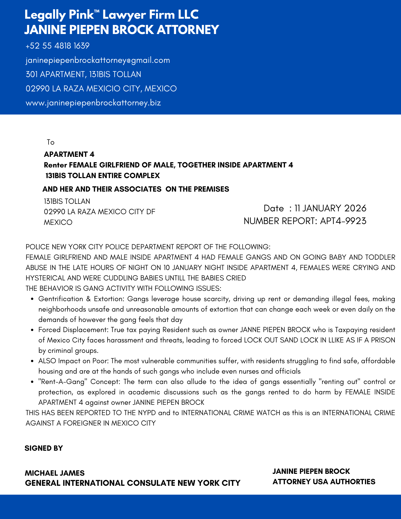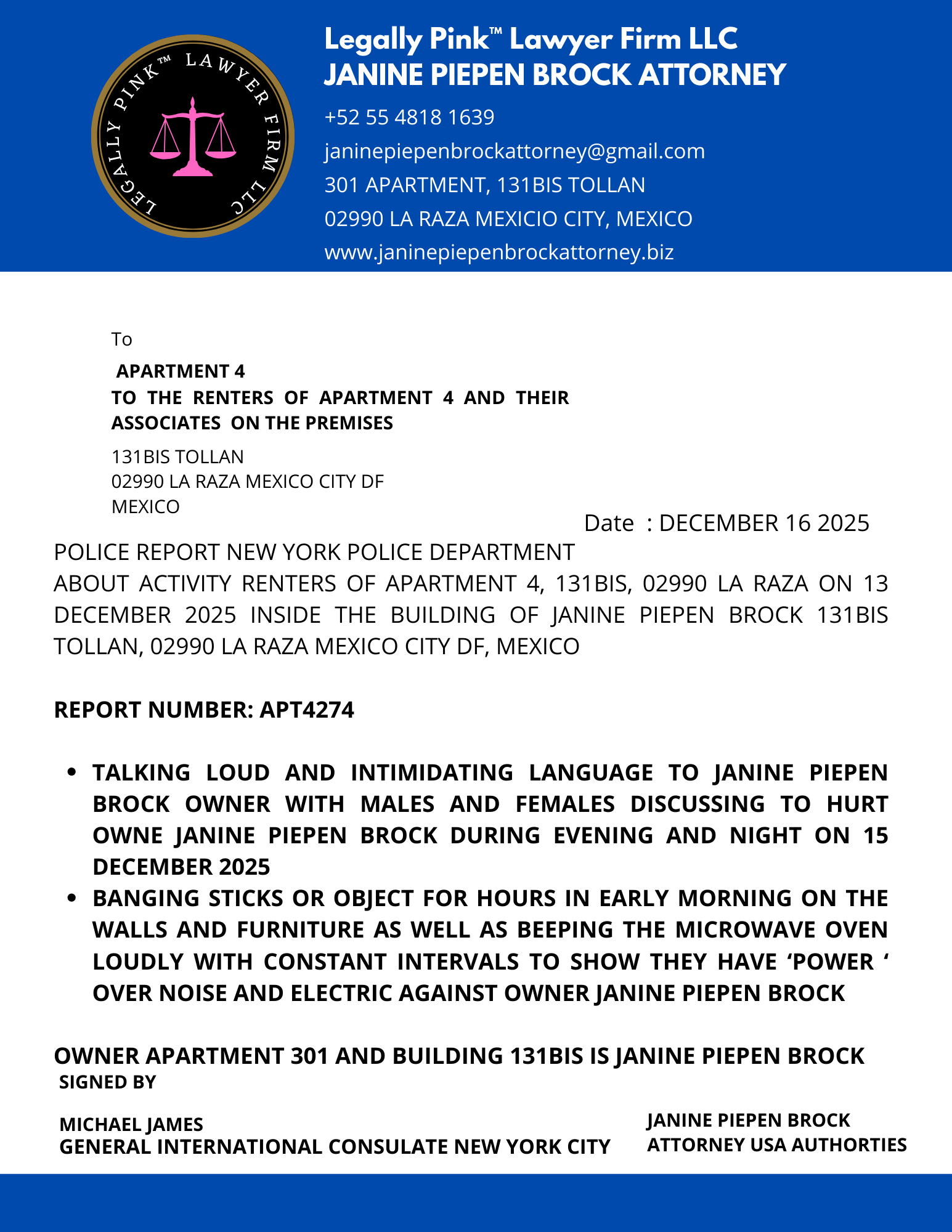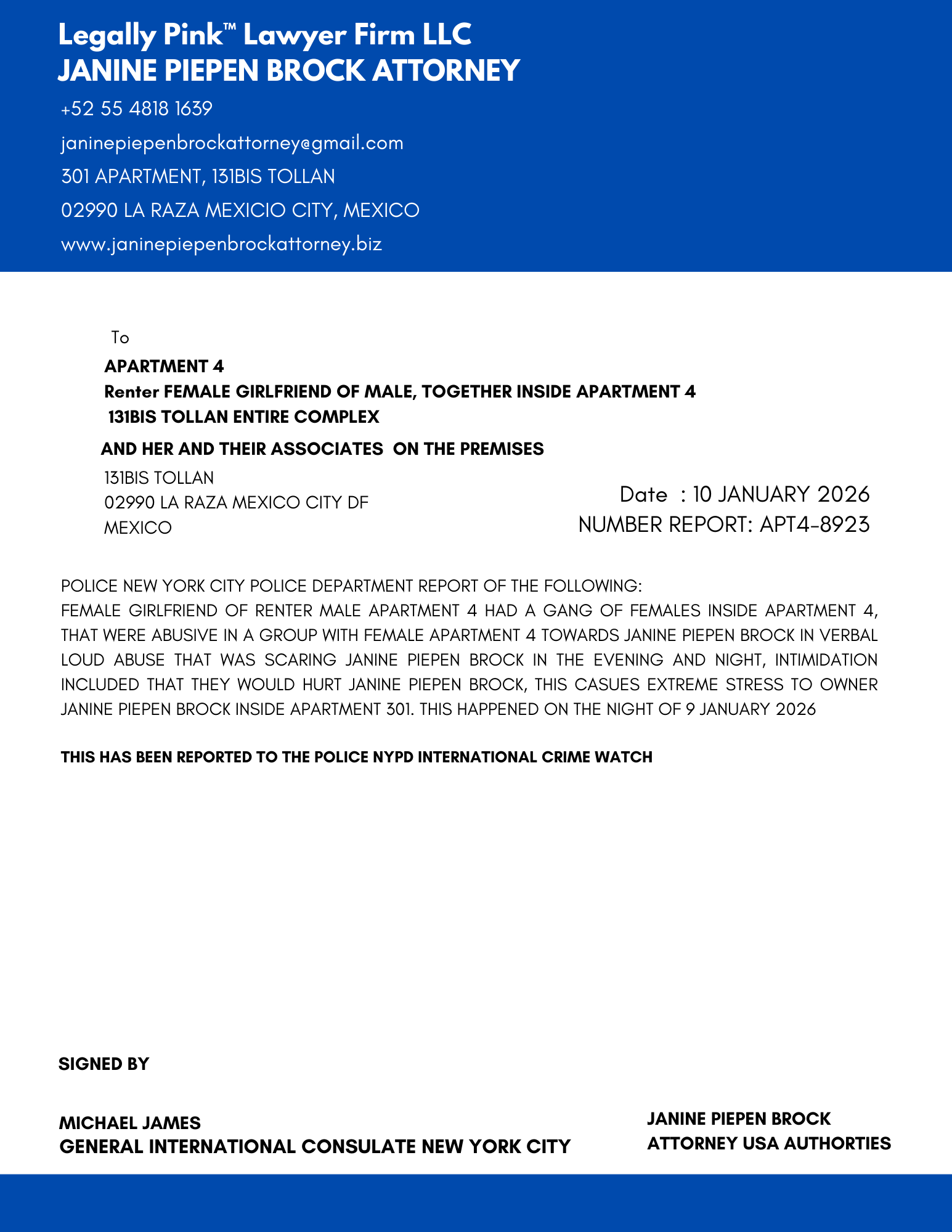 REPORT APARTMENT 4 FEMALE RENTER , 10 JANUARY 2026