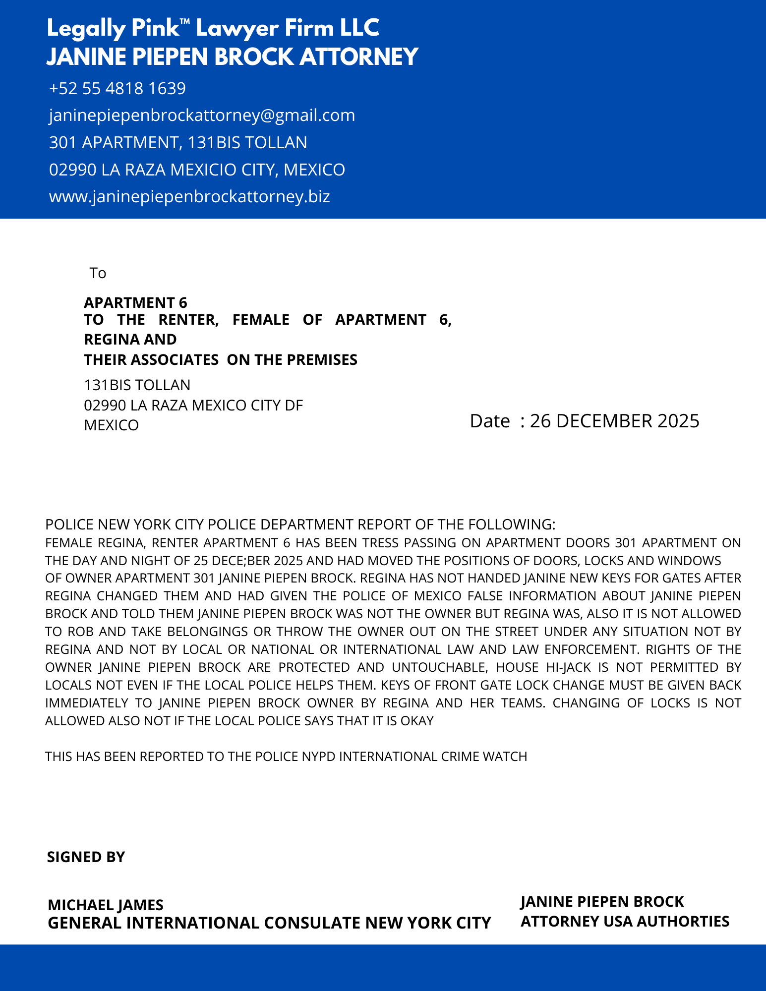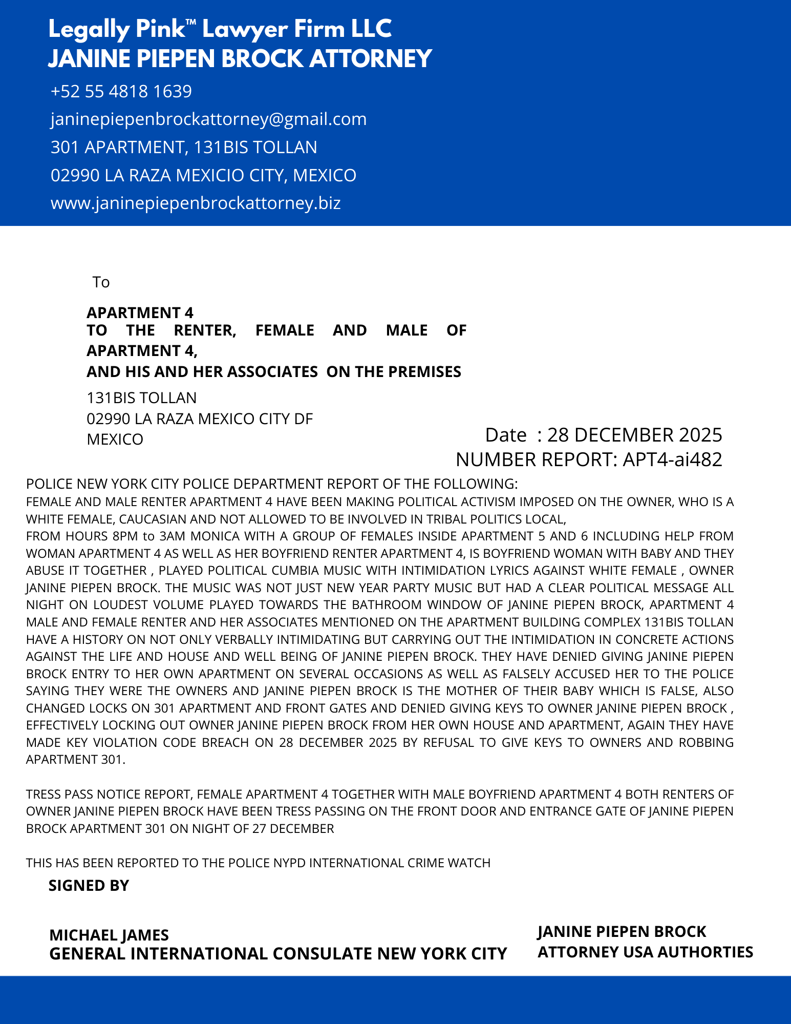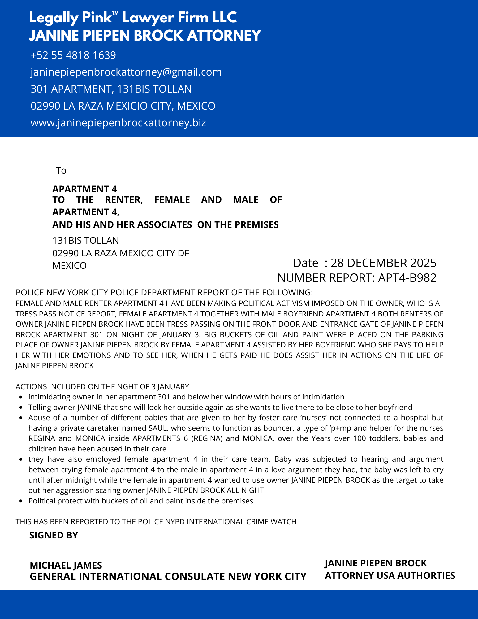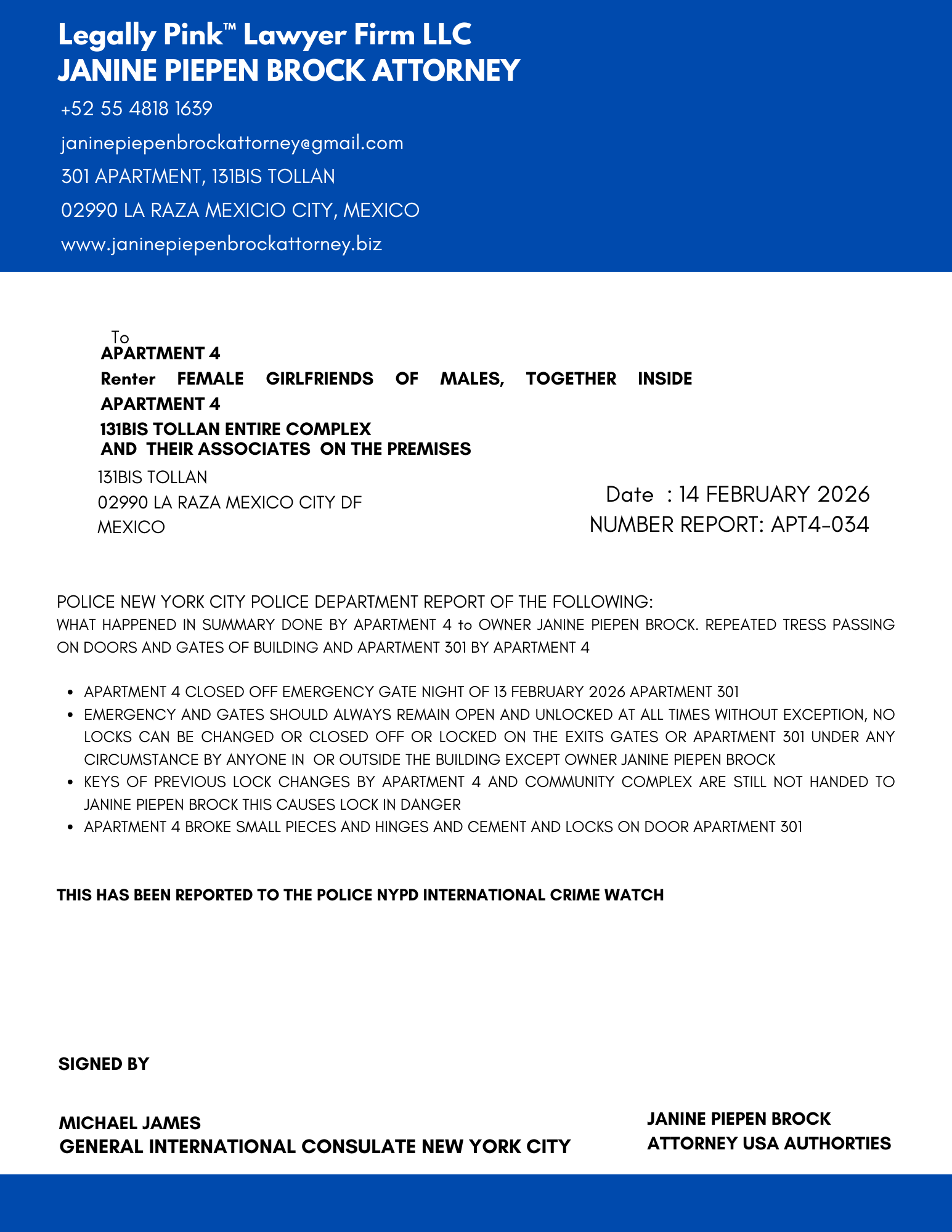 REPORT APARTMENT 4 FEMALE RENTER , 10 JANUARY 2026