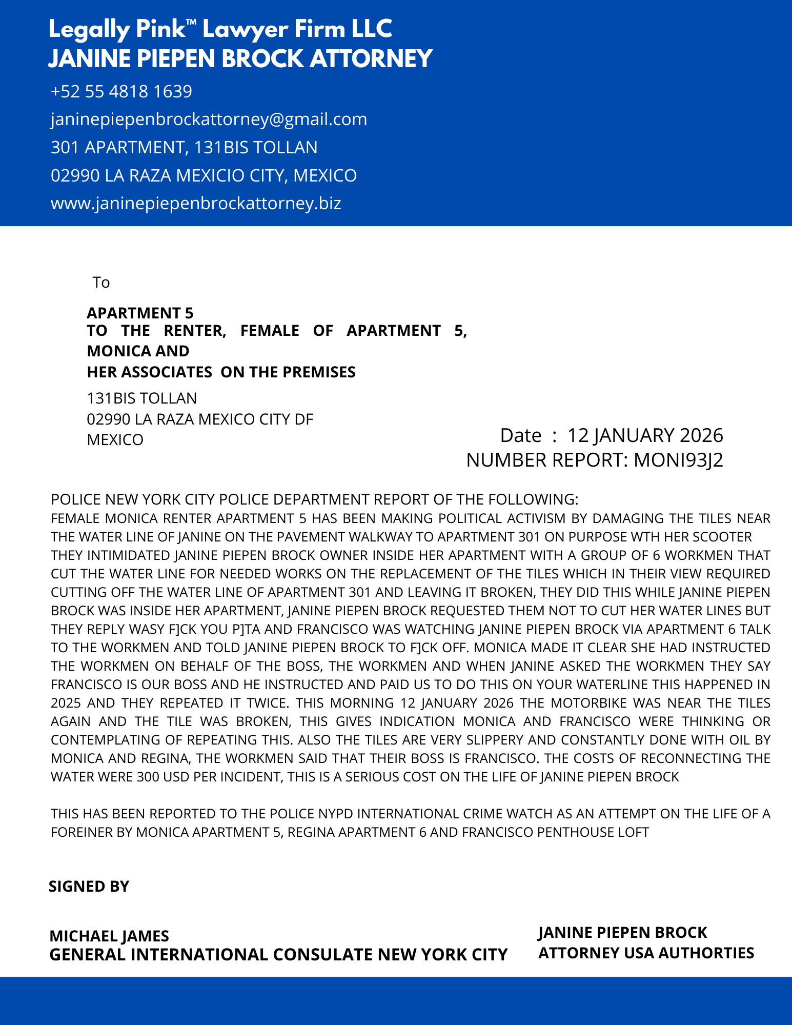 REPORT APARTMENT 5, FEMALE RENTER 12 JANUARY 2026